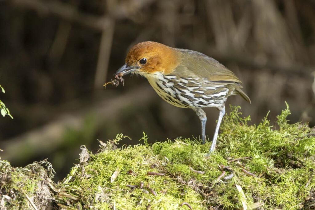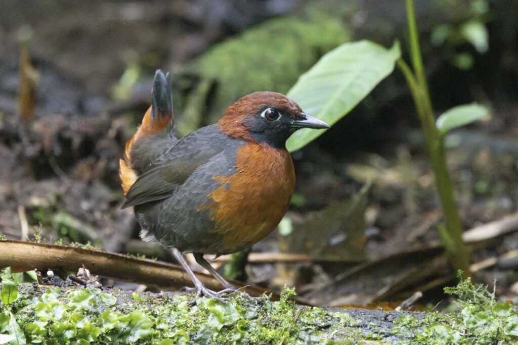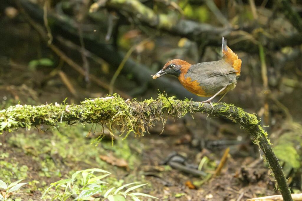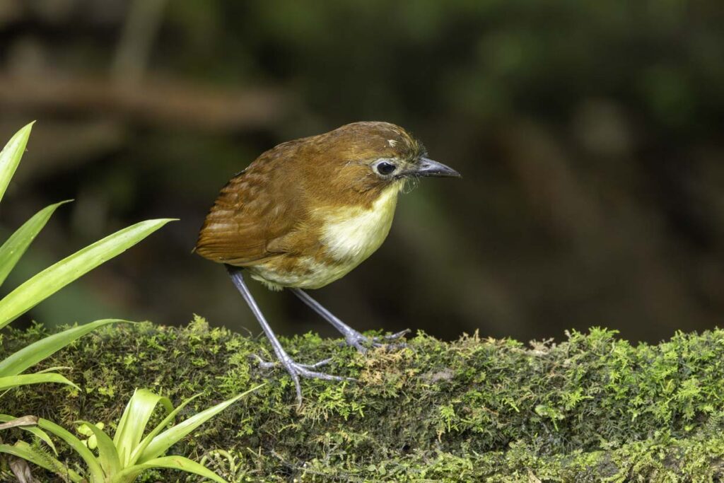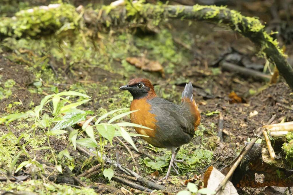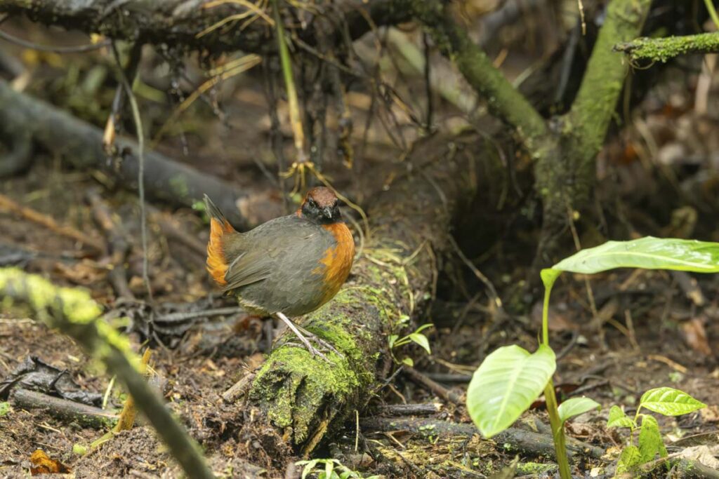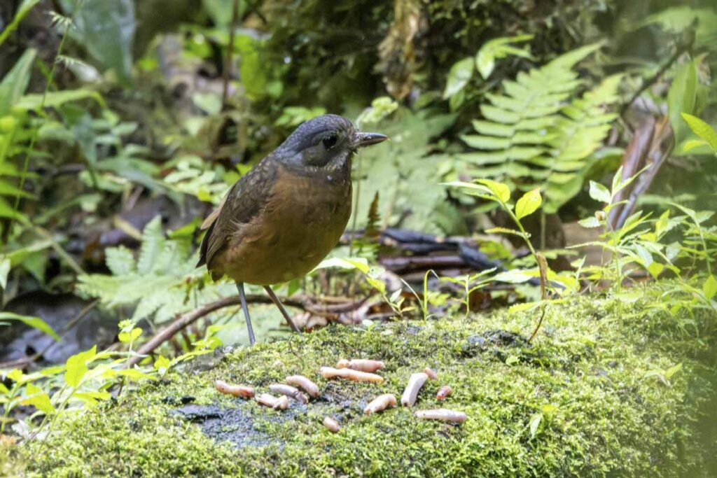 The Antthrushes are related to Antpittas, and were once grouped in the same family. While more recent genetic studies place them in separate families, they share a similar range, similar foraging habits, and similar challenges to spot them in the dense understory. However, Angel Paz has recently conditioned a Rufous-bellied Antthrush to be lured out in the open to feed on grubs.
