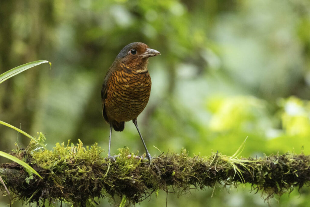 The Giant Antpitta is one of the largest of the Antpitta species. They are found on both the east and west slopes of the Andes at elevations between 4,000 and 10,000 feet.